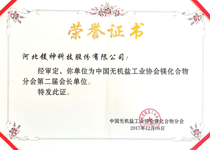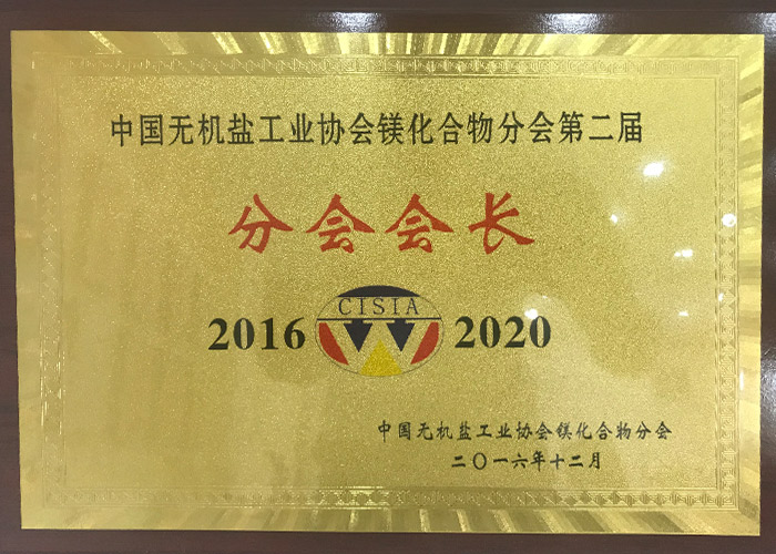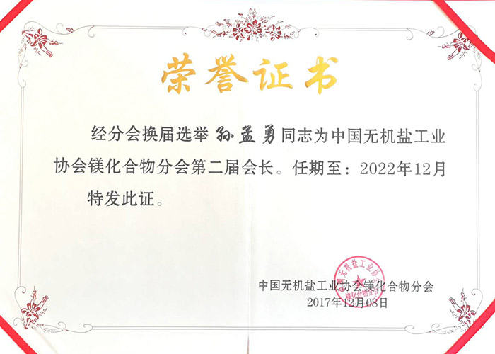 中國無機鹽工業(yè)協(xié)會鎂化合物分會第二屆分會會長