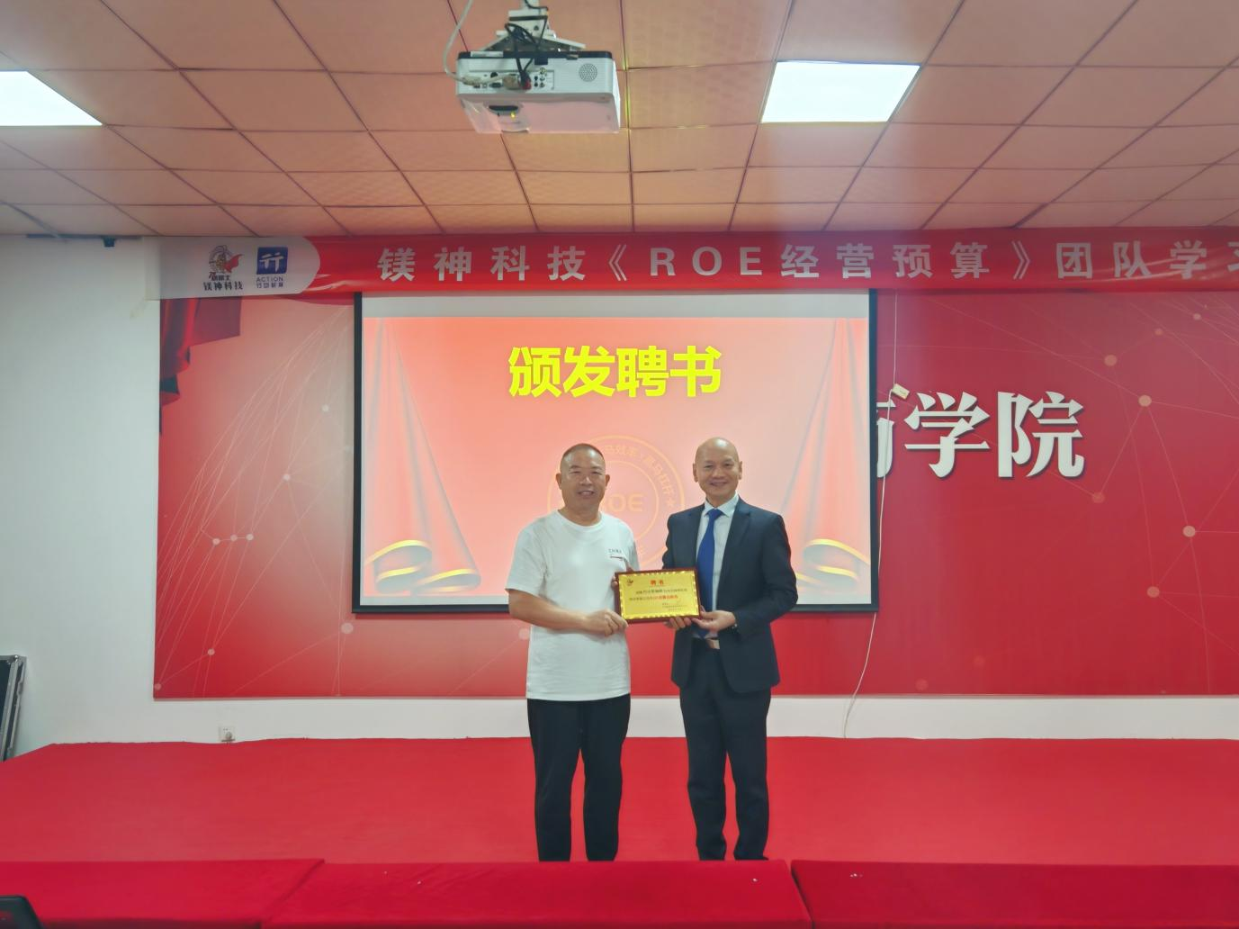 本次培訓(xùn)特邀企業(yè)經(jīng)營預(yù)算領(lǐng)域?qū)崙?zhàn)專家付小平老師擔(dān)任主講,付老師擁有十余年大型企業(yè)預(yù)算體系搭建經(jīng)驗,更是ROE預(yù)算系統(tǒng)的創(chuàng)始人。他深耕企業(yè)實踐、扎根一線經(jīng)營,讓其課程兼具理論高度與實踐溫度,憑借“復(fù)雜理論通俗化、實操方法工具化”的授課風(fēng)格,付老師的課程在業(yè)界廣受好評。董事長兼總裁孫文為付老師頒發(fā)“ROE預(yù)算總教練”聘書。