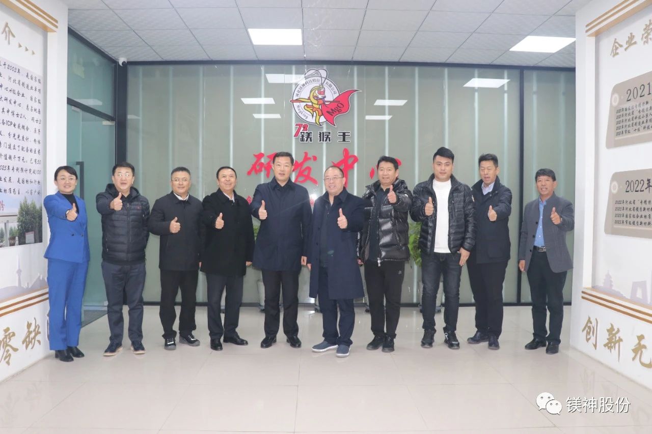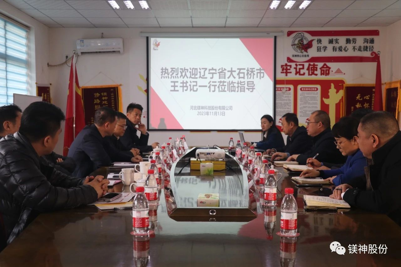 新聞摘要:11月13日,遼寧省大石橋市市委書記王殿豐一行蒞臨河北鎂神科技股份有限公司(以下簡稱“鎂神科技”),鎂神科技董事長孫文帶領公司高管熱情接待,并陪同參觀了榮譽室、研發(fā)中心、生產(chǎn)車間和倉庫。此次交流旨在加強兩地企業(yè)間的合作,推動產(chǎn)業(yè)發(fā)展和技術創(chuàng)新。