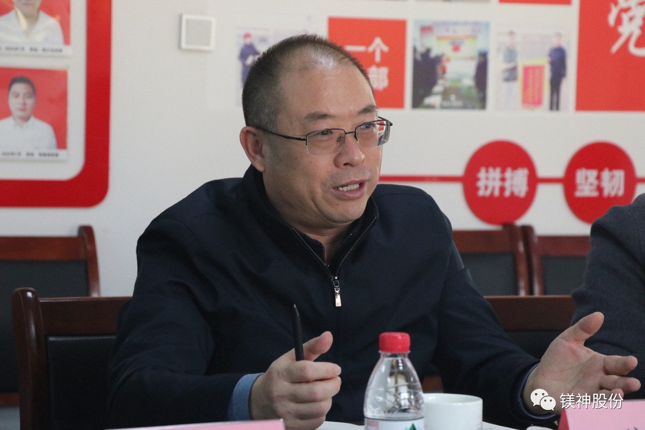 參觀結束后,王書記一行與鎂神科技董事長孫文及高管進行了座談交流。雙方就加強企業(yè)間合作、促進技術創(chuàng)新、推動完善鎂質(zhì)新材料產(chǎn)業(yè)鏈等方面進行了深入探討。