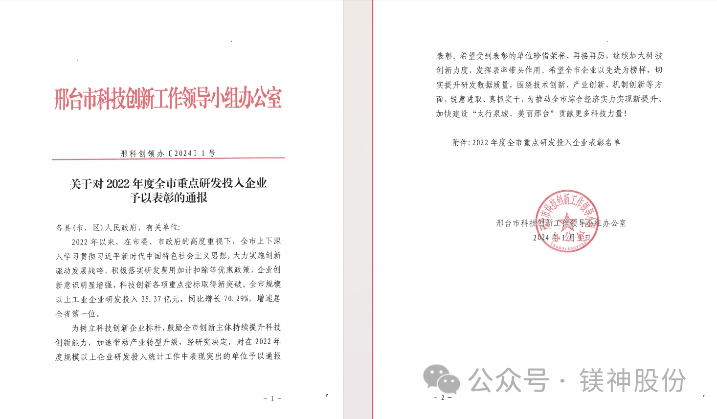 鎂神科技在經(jīng)過嚴(yán)格的評(píng)審和選拔后,成功入選了2022年市重點(diǎn)研發(fā)投入企業(yè)表彰名單。這一榮譽(yù)標(biāo)志著我們對(duì)科技創(chuàng)新的持續(xù)投入和卓越成果得到了社會(huì)的廣泛認(rèn)可和高度評(píng)價(jià)。