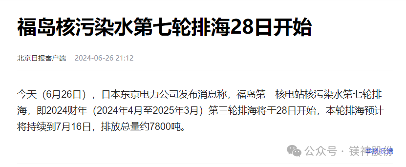同時(shí),我們也應(yīng)該堅(jiān)決反對(duì)使用受核污水污染的海水提取鎂制品的行為,以保護(hù)我們的環(huán)境和健康。