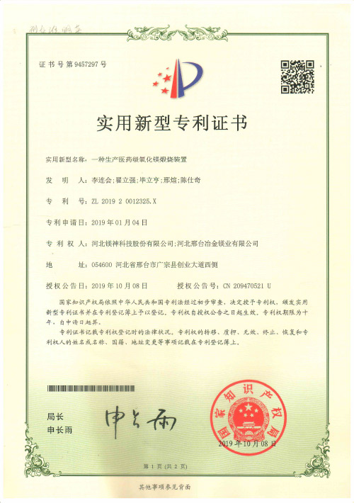 一種生產(chǎn)醫(yī)藥級氧化鎂煅燒