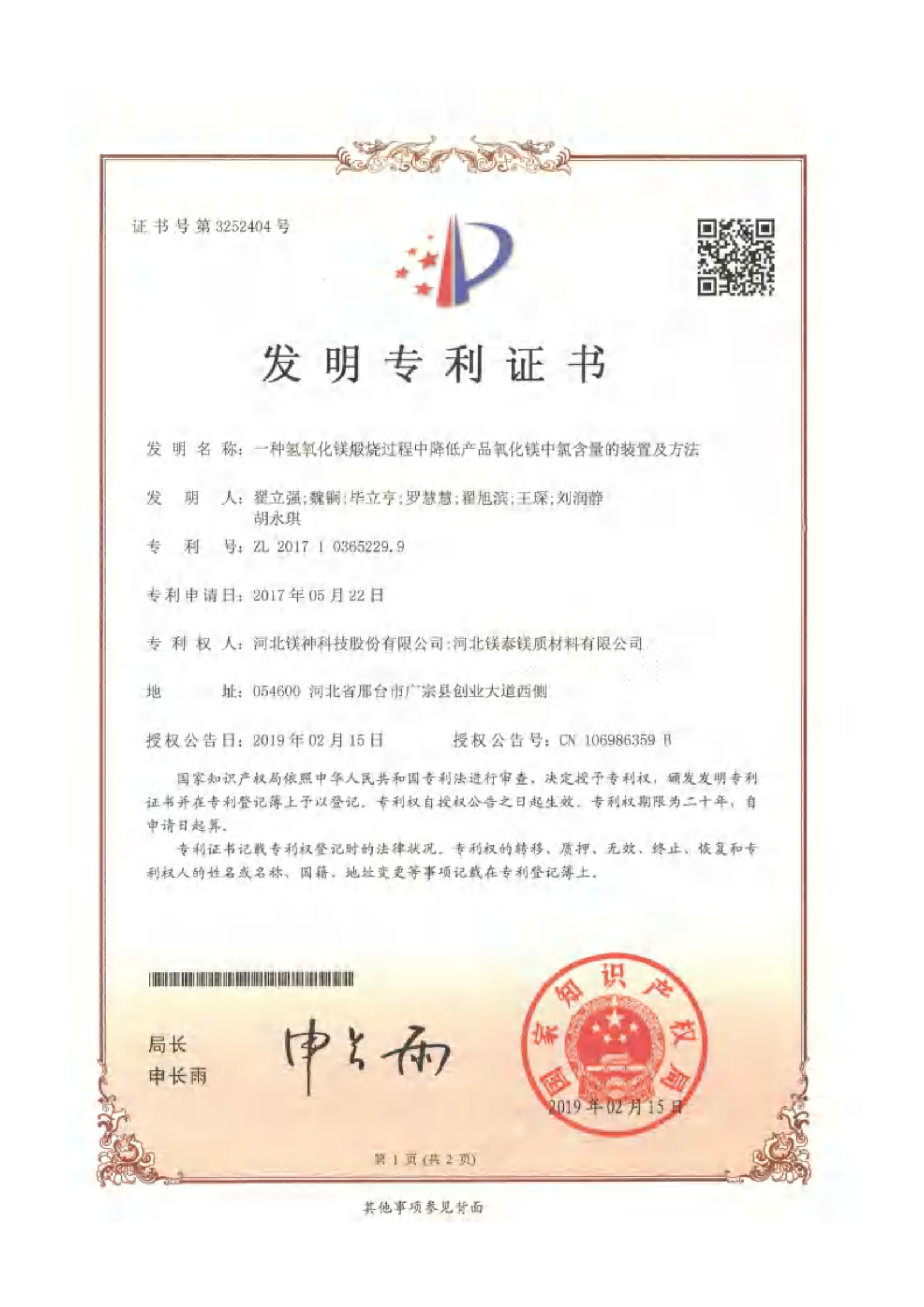 一種氫氧化鎂煅燒過程中降低產(chǎn)品氧化鎂中氯含量的裝置及方法